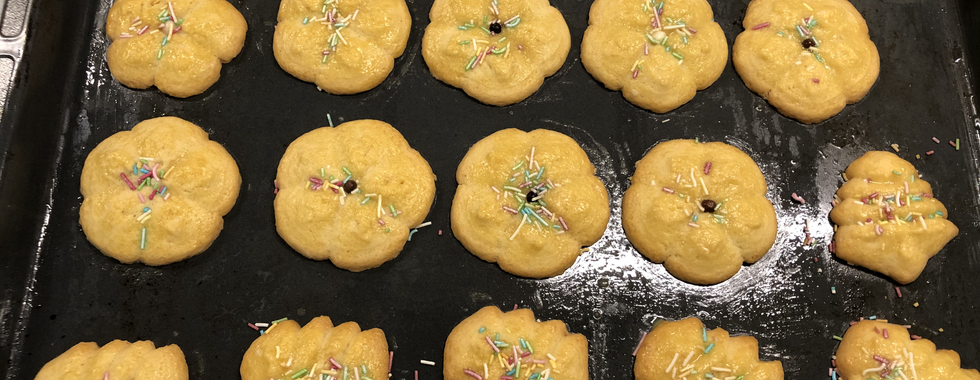 Es entsteht ein weicher, homogener Teig, der sich mittels Spritztüte oder Gebäckpresse gut auf ein vorbereitetes (mit Backpapier ausgelegtes oder befettetes) Backblech legen lässt.